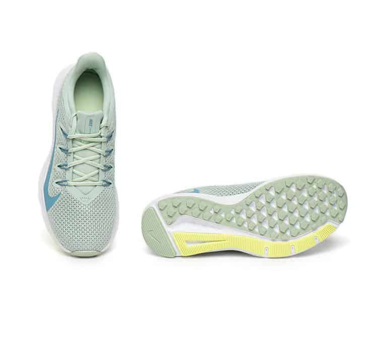 Женские беговые кроссовки Quest 2 Running Shoe от бренда Nike – это максимальный комфорт и легкость в течение всего дня. Выполненные ярком современном стиле, кроссовки обязательно понравятся любительницам активного образа жизни. Приятный цвет в зеленных оттенках подойдет абсолютно всем девушкам, независимо от возраста. Сетчатый верх обеспечивает высокую воздухопроницаемость и удобство, позволяя заниматься спортом, даже в самые жаркие дни. Технологичные материалы обладают высоким запасом прочности и сохраняют превосходный внешний вид кроссовок на долгие годы. Классическая система шнуровки в сочетании со специальными нитями Flywire, плотно фиксируют среднюю часть стопы во время бега. Фирменная подошва из пеноматериала Phylon во всю длину стопы обладает невероятно легким весом, упругостью и амортизацией. Такая конструкция снижает нагрузку на стопу и помогает ногам уставать намного меньше после длительных дистанций. Для дополнительного комфорта, стелька выполнена из Eva материала, который принимает форму стопы. Бесшовные термополиуретановые накладки обеспечивают защиту и поддержку в наиболее уязвимых местах. Полноразмерная резиновая подметка с вафельным рисунком обладает отличным сцеплением на любых поверхностях, позволяя выкладываться на полную, во время занятий спортом. Универсальная обувь аккуратно смотрится на ноге и дополнит, как спортивный, так и повседневный городской образ. Особенности и преимущества: