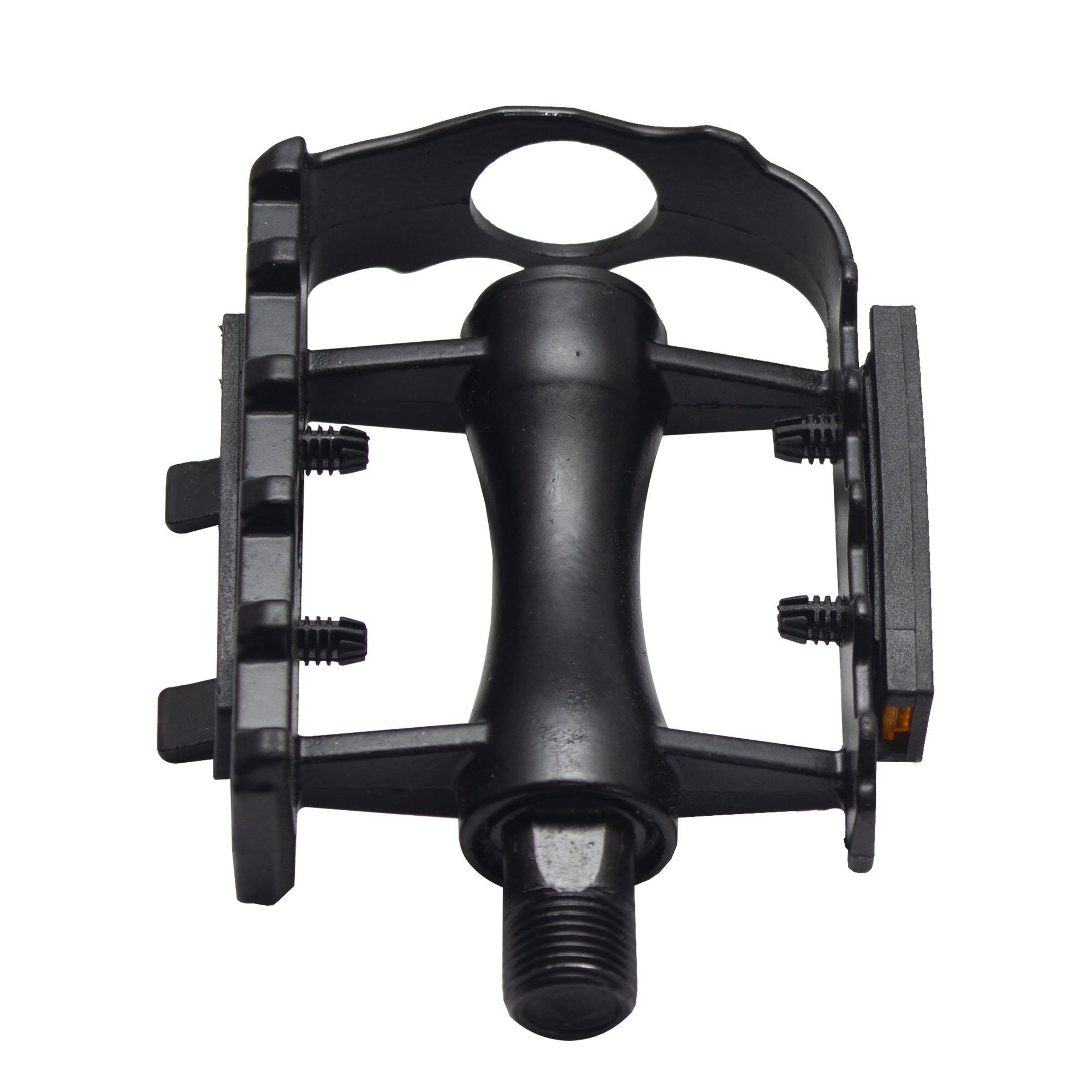 Педали BIG BRO BB969 изготовлены из высококачественного алюминия, обеспечивая не только высокую прочность, но и малый вес. Ось педалей, стандартного размера 9/16 дюймов, гарантирует их универсальность и легкость монтажа на большинство типов велосипедов. Встроенные светоотражающие элементы значительно повышают безопасность велосипедиста в условиях плохой видимости, делая его заметнее для водителей автомобилей и других участников дорожного движения. Рельефная поверхность педалей специально разработана для обеспечения максимального сцепления с обувью, что исключает вероятность скольжения ноги во время езды, позволяя велосипедисту чувствовать себя уверенно и комфортно в любых условиях.Характеристики: